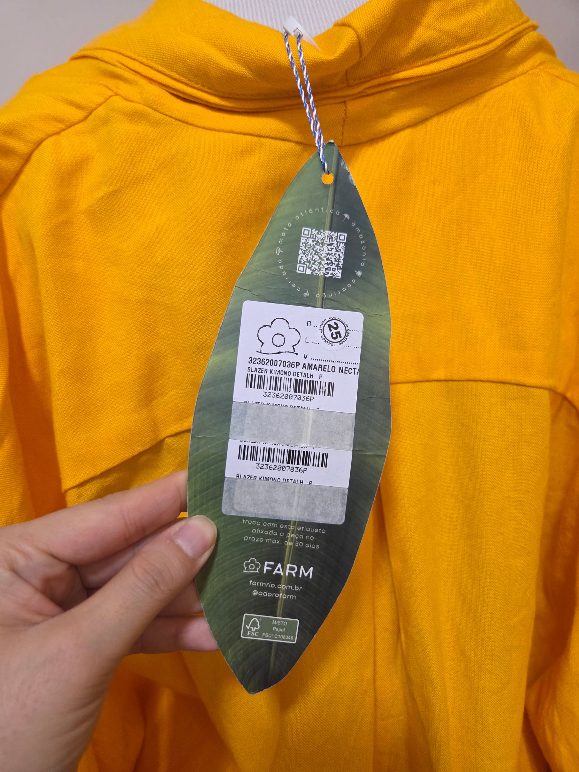 Aposte na versatilidade e no estilo contemporâneo com o Blazer Kimono Farm Rio, novo e com tag original. Confeccionada em um mix nobre de fibras que inclui algodão (42%), viscose (38%), modal (14%) e linho (6%), esta peça oferece um toque rústico e sofisticado, com excelente respirabilidade e caimento impecável.