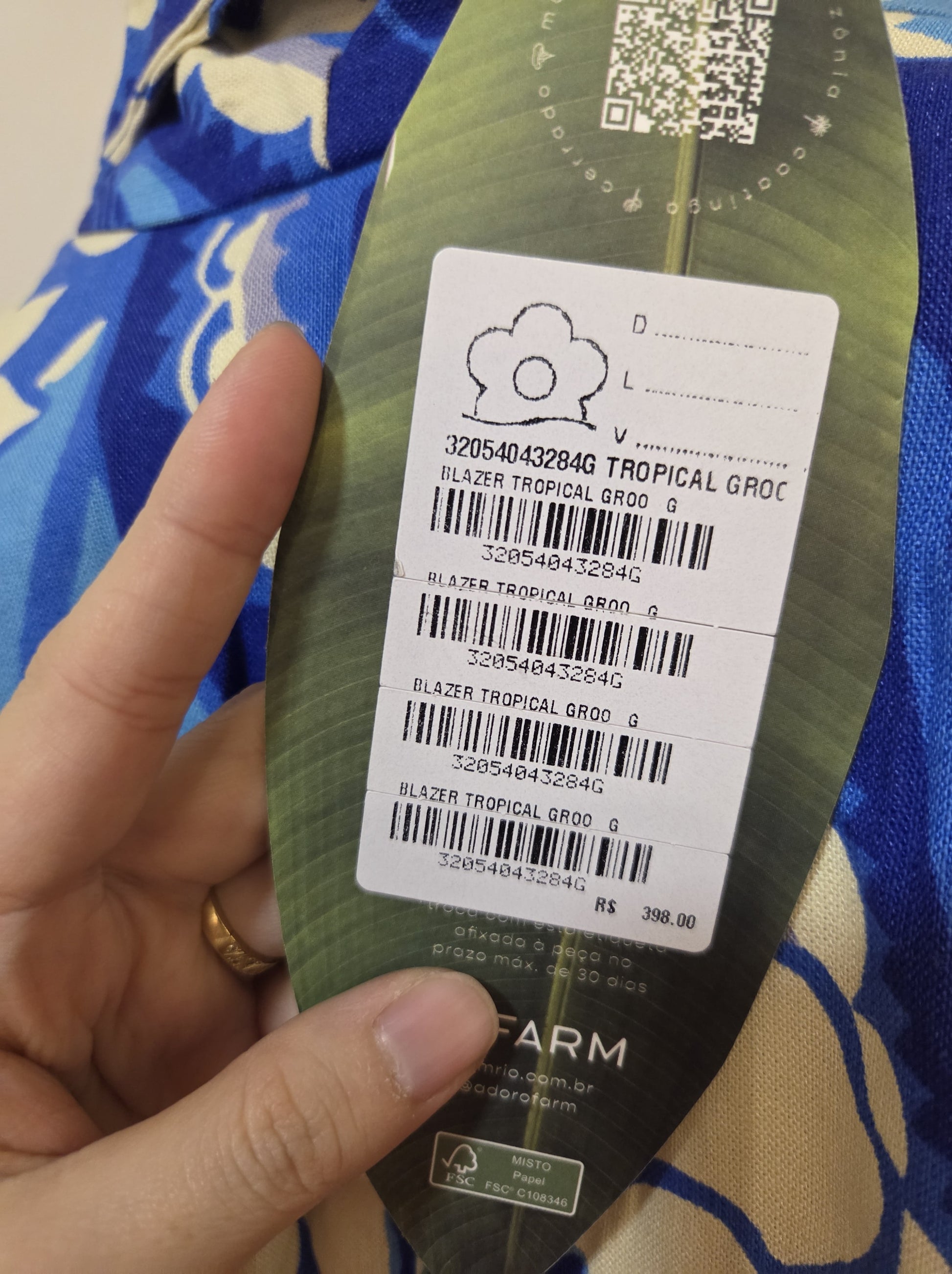 Com um visual moderno e a estampa inconfundível da marca, esta Camisa/Blazer Farm é uma peça statement para sobreposições! A peça é confeccionada em um tecido nobre e fresco, misturando 42% Algodão, 38% Viscose, 14% Modal e 6% Linho, garantindo leveza e caimento estruturado, semelhante a um blazer leve.