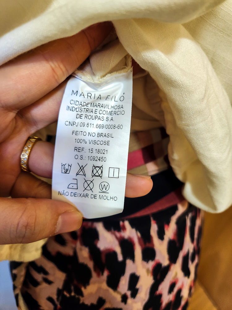 Detalhes: Decote V transpassado (fixo), Elástico na barra e nas mangas, Tecido leve e fluido