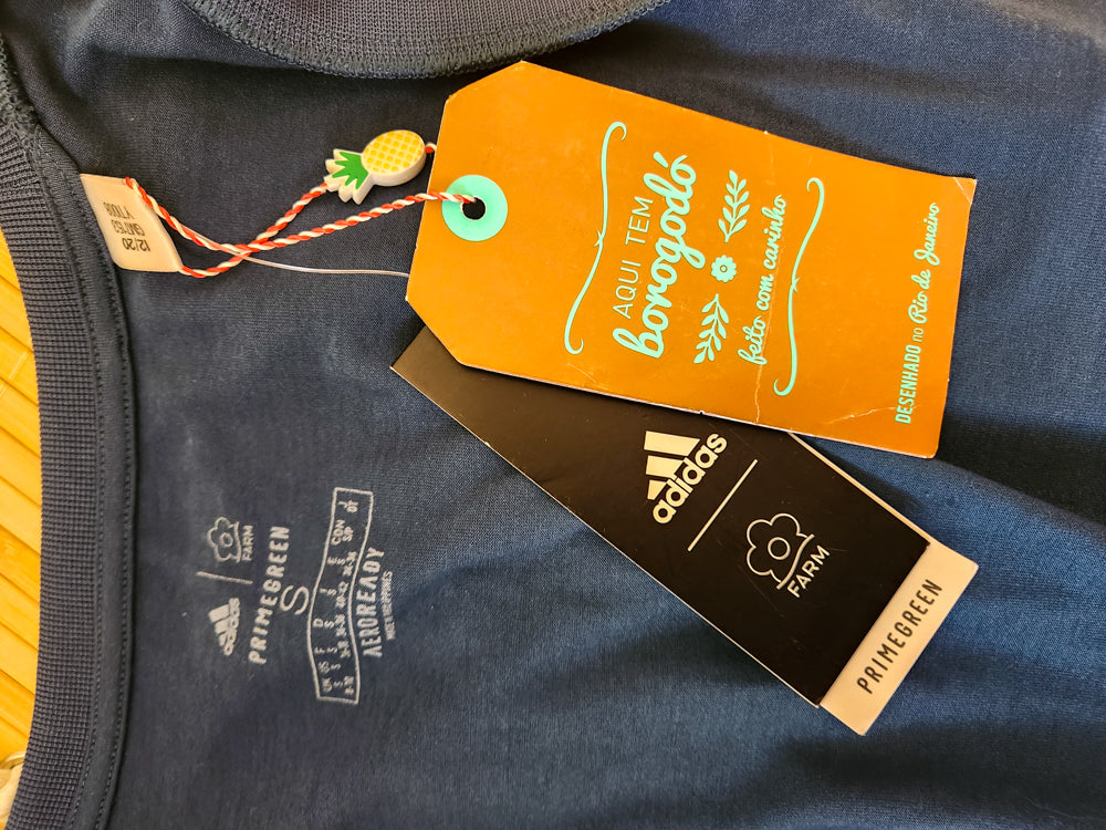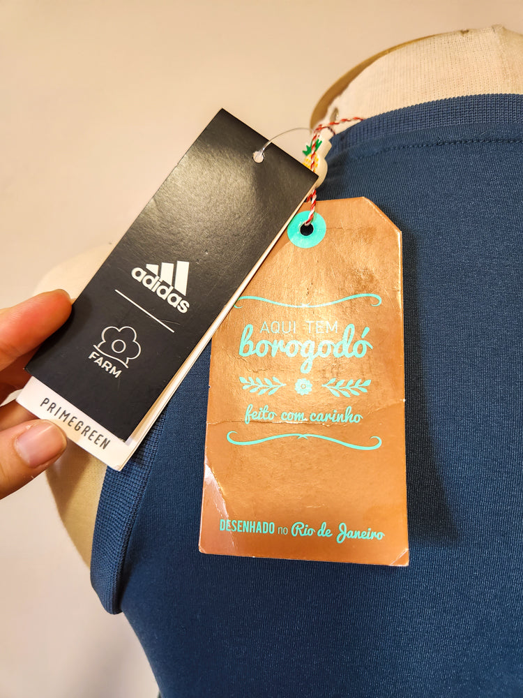 Peça original da collab Farm + Adidas, nova com tag. Modelo regata com comprimento cropped, ideal para looks casuais e esportivos. Possui estampa tie dye em 3 cores (azul marinho, rosa e verde claro) com o logo Adidas centralizado na parte frontal. Confeccionada em tecido 100% poliéster, leve e confortável.