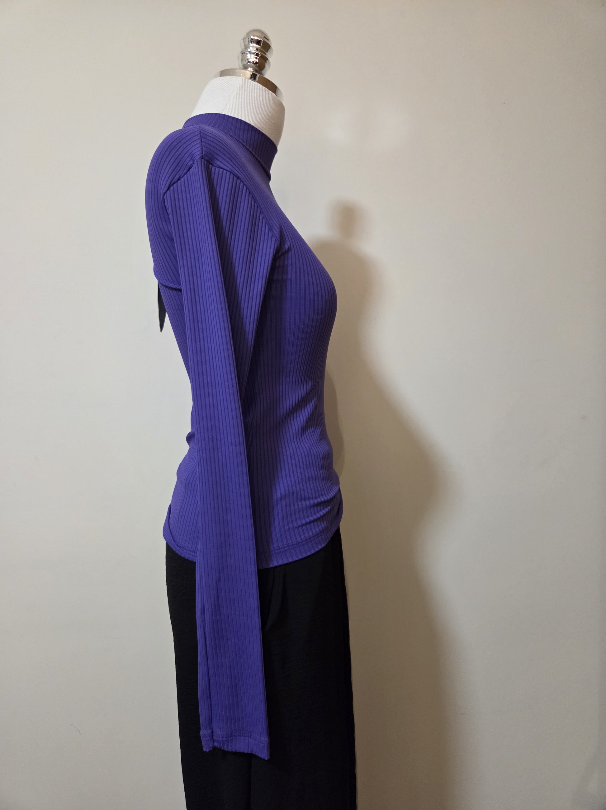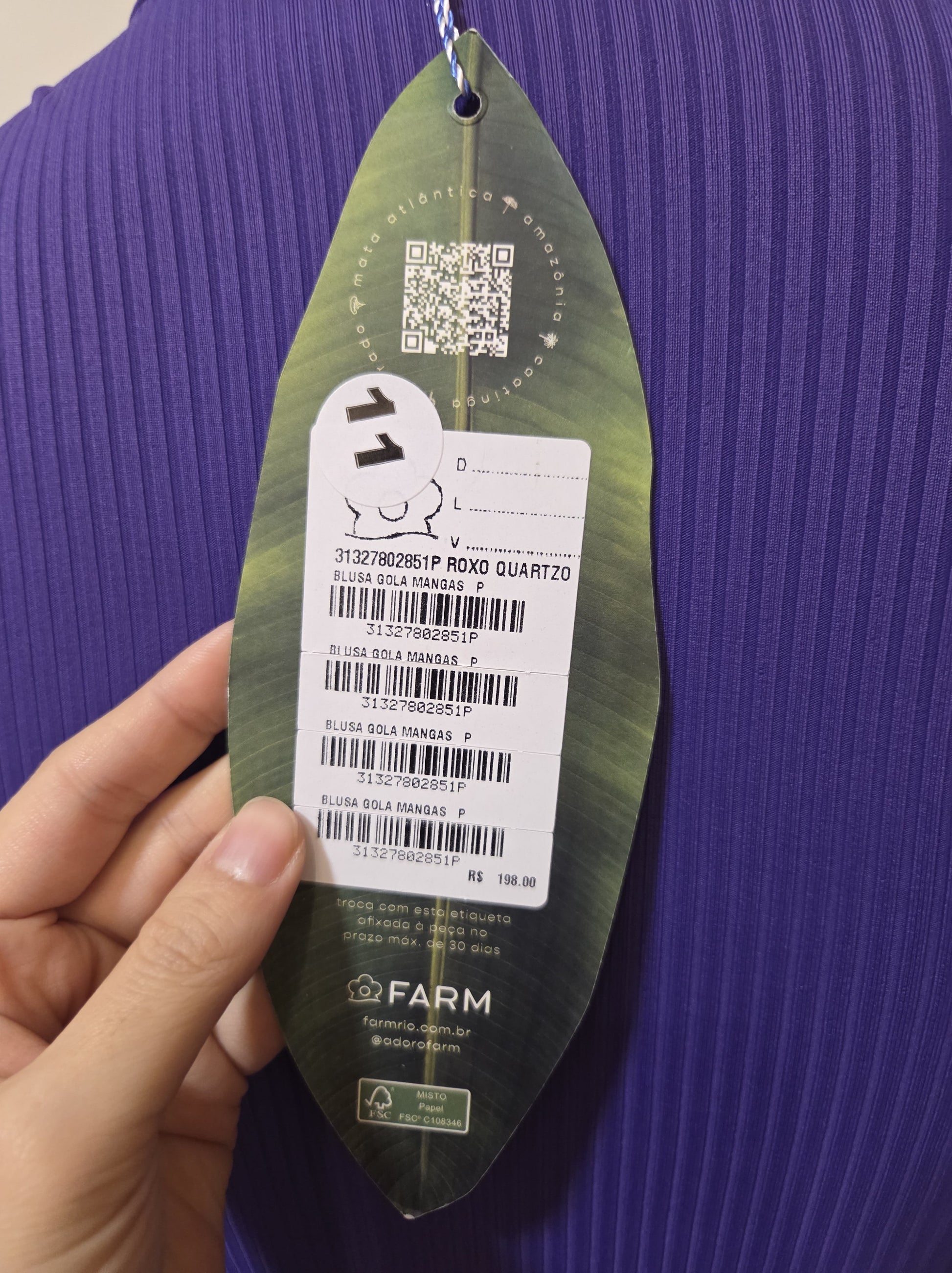 Blusinha Farm Básica Roxo Liso Canelada Manga Comprida