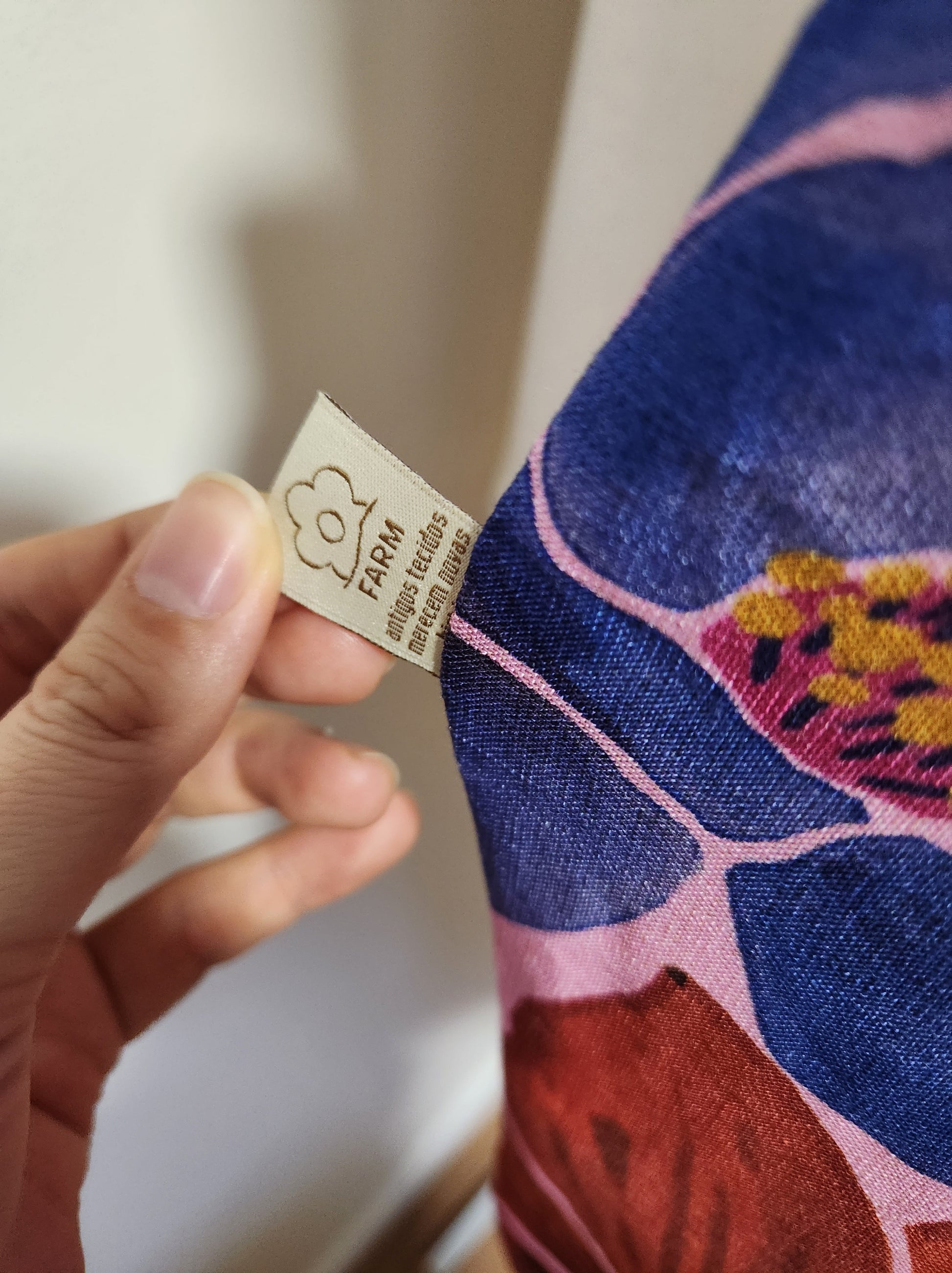 "Antigos tecidos merecem novas histórias" - Esta bolsa Farm dupla face é a peça perfeita para um visual versátil e consciente. Nova e confeccionada com o reaproveitamento de sobras de tecidos da marca, ela oferece duas estampas exclusivas em uma única bolsa, ideal para quem busca praticidade e estilo em um só acessório.