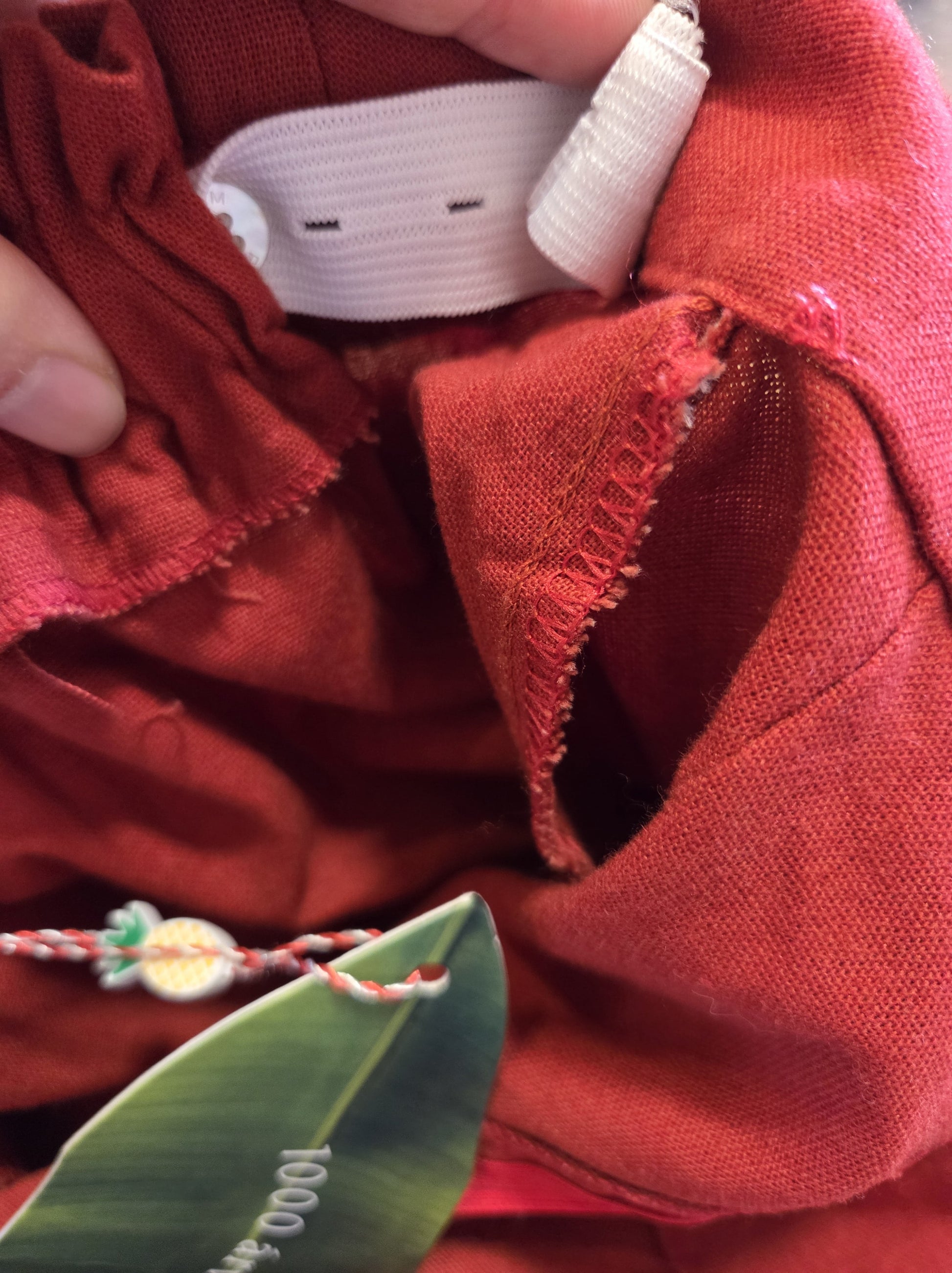 Possui fechamento frontal com zíper e botões (um botão encapado visível e um botão interno funcional, possivelmente), e detalhes de costura que alongam a silhueta. Na parte de trás, a cintura conta com elástico (como visto na imagem detalhada do interior da cintura), garantindo conforto e um ajuste flexível. A parte de trás também pode ter um franzido sutil devido ao elástico. Uma peça versátil que combina estilo e bem-estar.