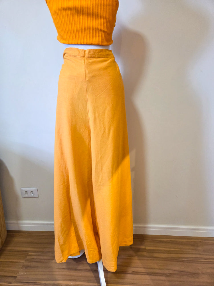 Confeccionada em um blend de tecidos nobres (algodão, viscose, modal e linho), oferece um caimento leve, fresco e confortável, ideal para o clima do Brasil. A cor laranja vibrante a torna um item de destaque no guarda-roupa. A modelagem ampla veste do P ao G, adaptando-se a diferentes silhuetas.
