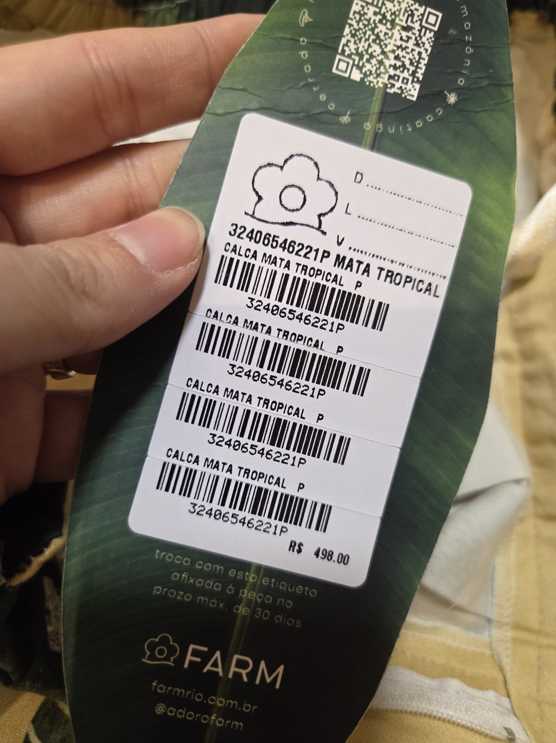 Calça feminina da marca Farm, perfeita para um visual vibrante e elegante. Confeccionada em um blend de 97% algodão e 3% elastano (conforme etiqueta), o tecido oferece conforto, um toque macio e leve elasticidade para melhor caimento.