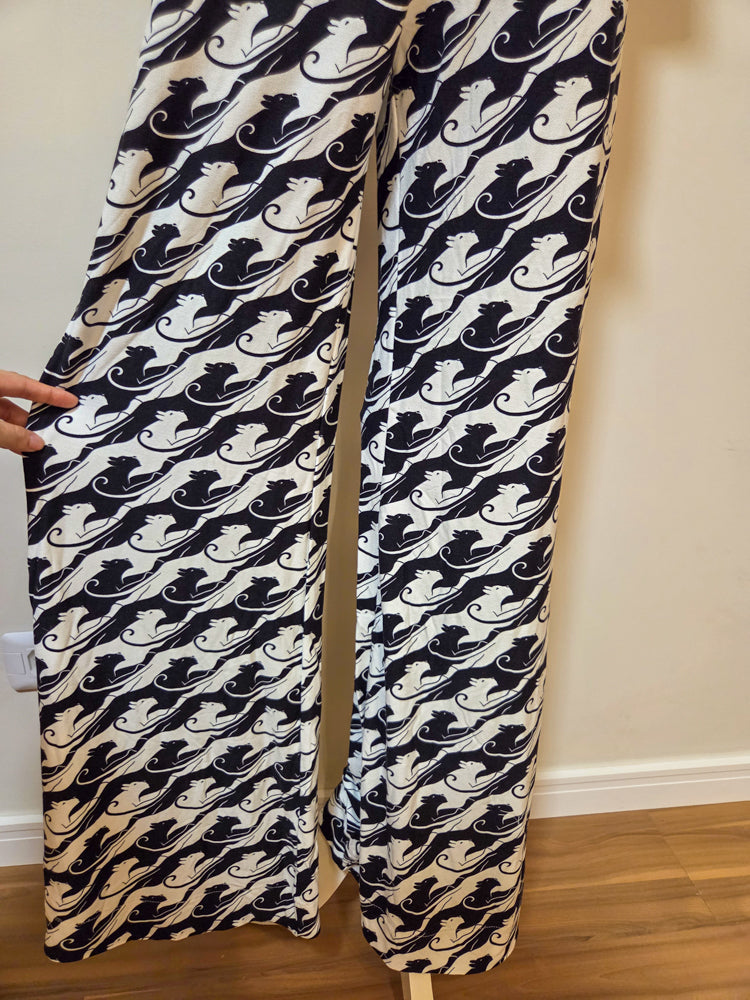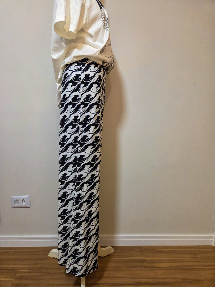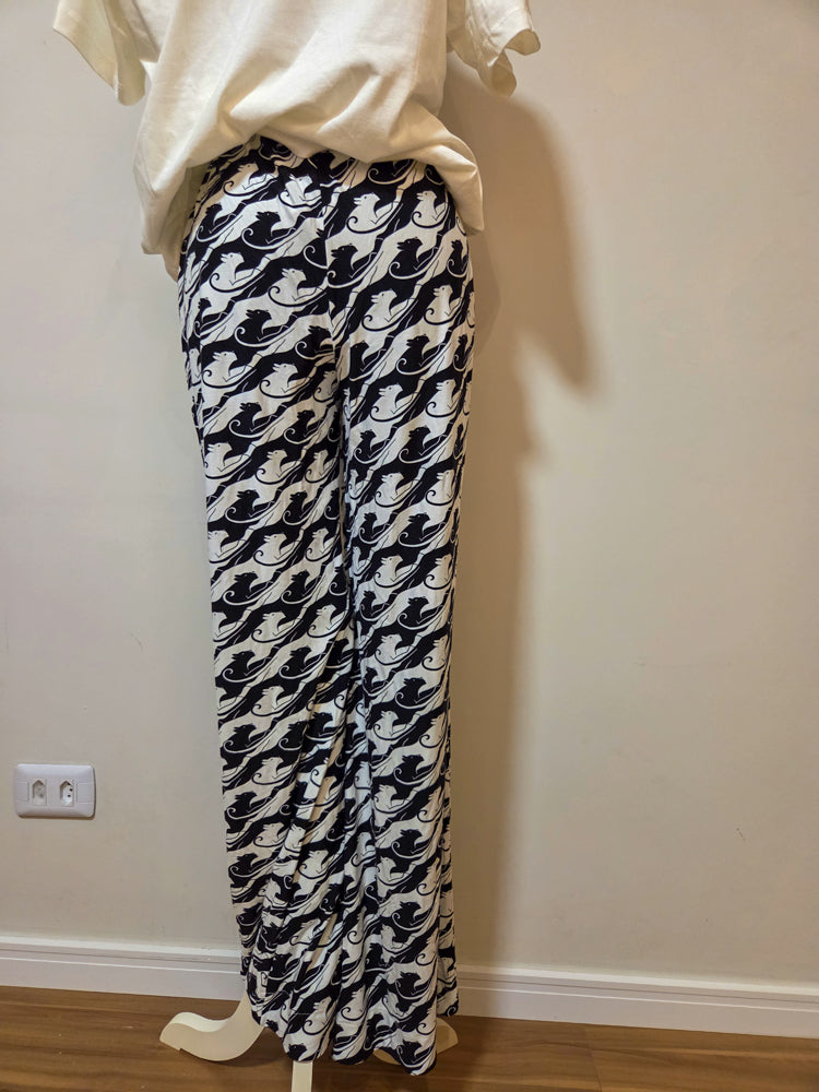 Calça Farm Pantalona Preto e Branco Animais