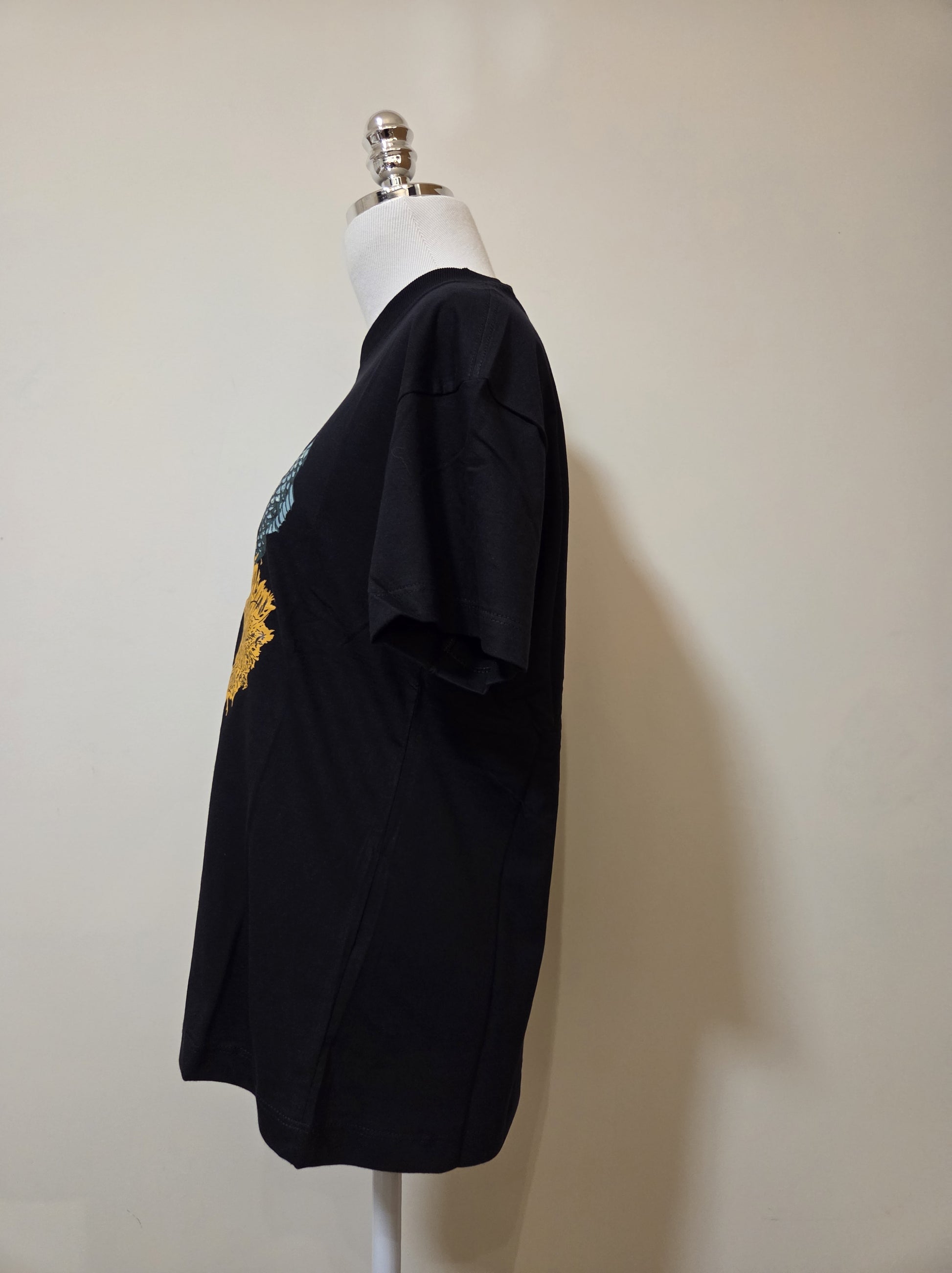 Cor: Preto com estampa multicolorida