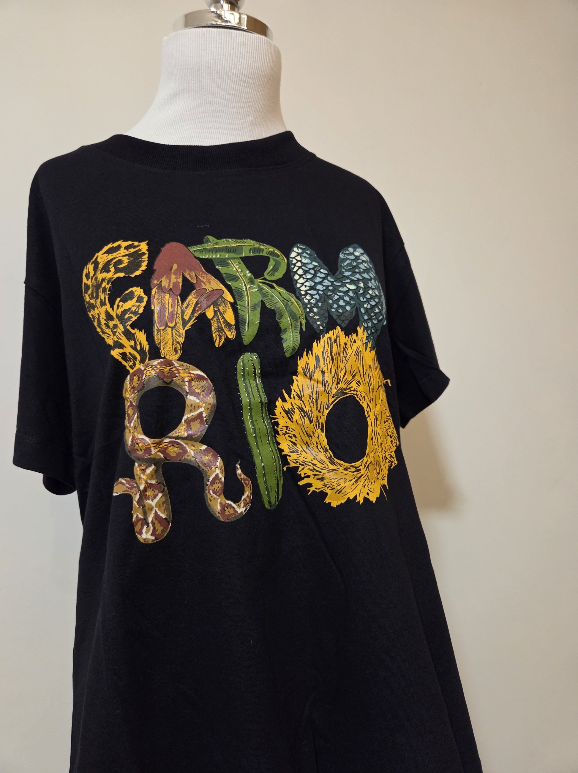 A Camiseta Farm Rio com estampa de letras texturizadas mistura o espírito criativo da marca com a força da natureza. A logo FARM RIO é reinventada com texturas de animais e elementos tropicais, como pele de onça, escamas de peixe, pele de cobra, folhas e até palha, formando um visual cheio de atitude. A modelagem ampla (over) e o algodão confortável garantem estilo e leveza para compor looks urbanos ou casuais.