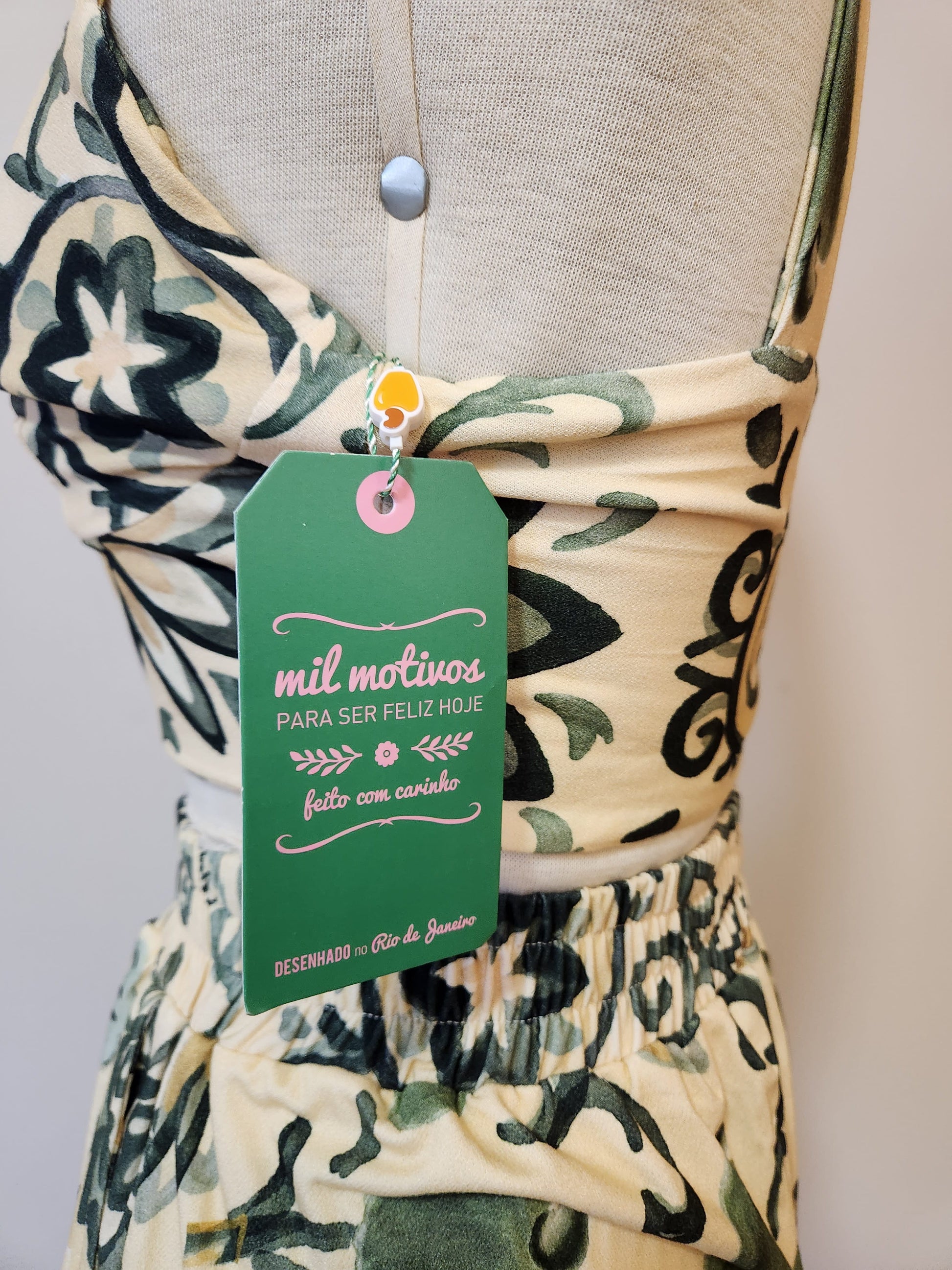 Cor Predominante: Bege com estampa em tons de Verde