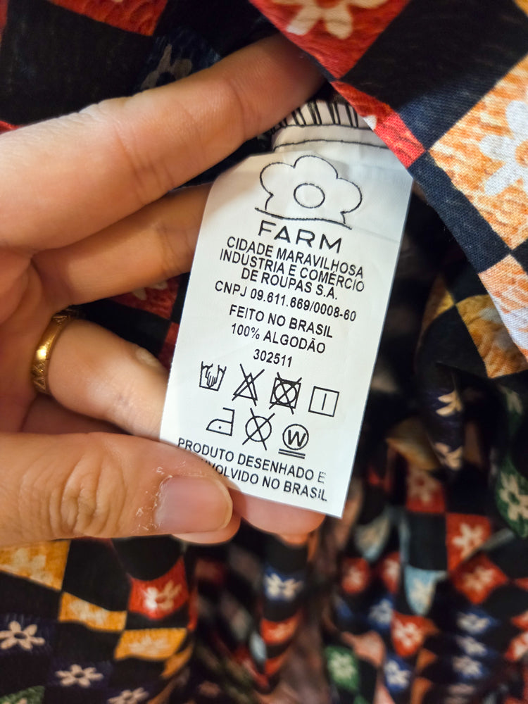 Um vestido estampado que une o conforto do algodão com o design divertido da Farm, sendo perfeito para quem busca roupas femininas coloridas e estilosas.