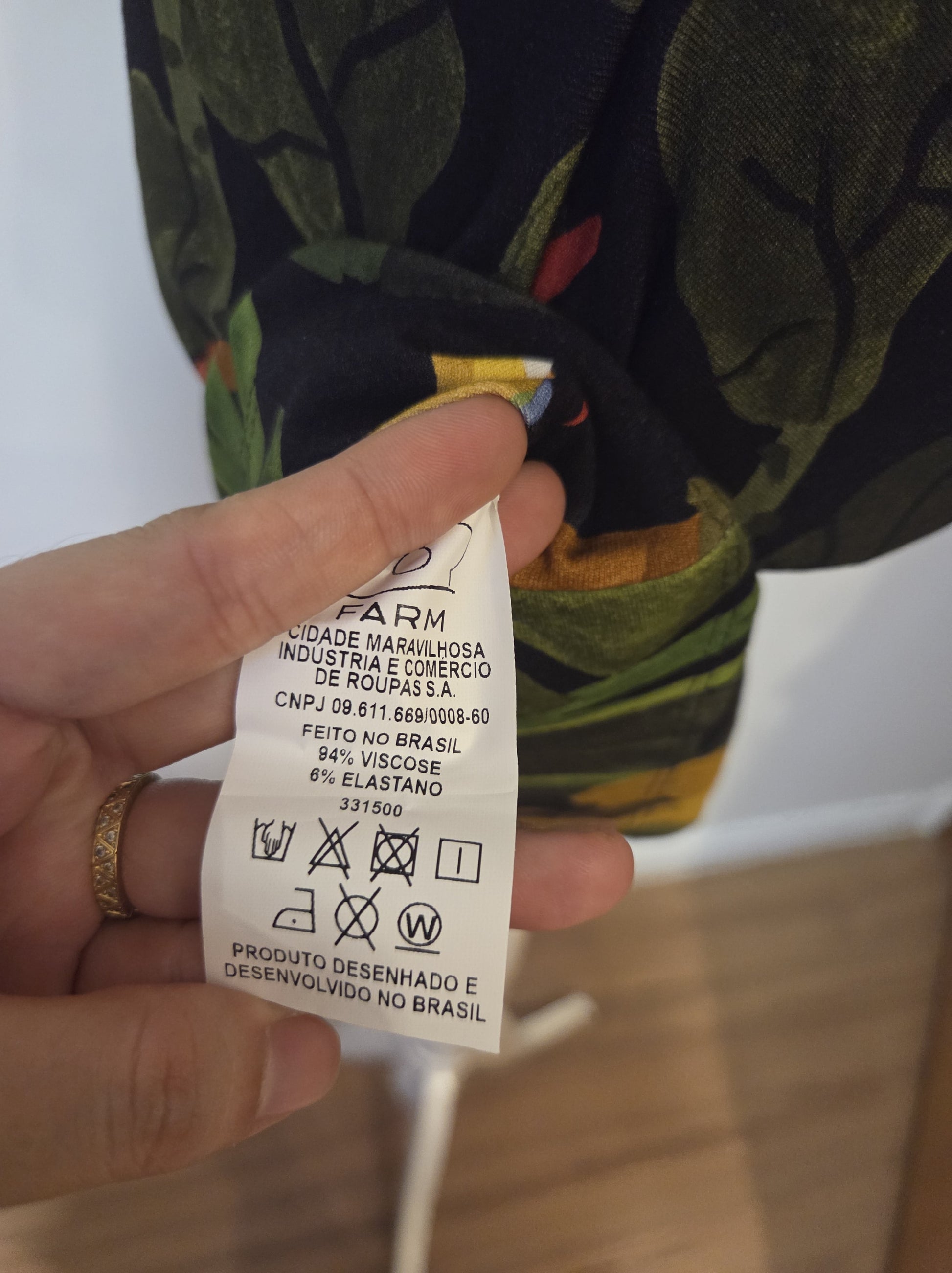 Celebre a exuberância da natureza brasileira com este Vestido Curto Farm Rio, confeccionado em malha macia de viscose (94%) e elastano (6%), esta peça oferece o ajuste perfeito ao corpo, unindo conforto absoluto com um visual impactante.