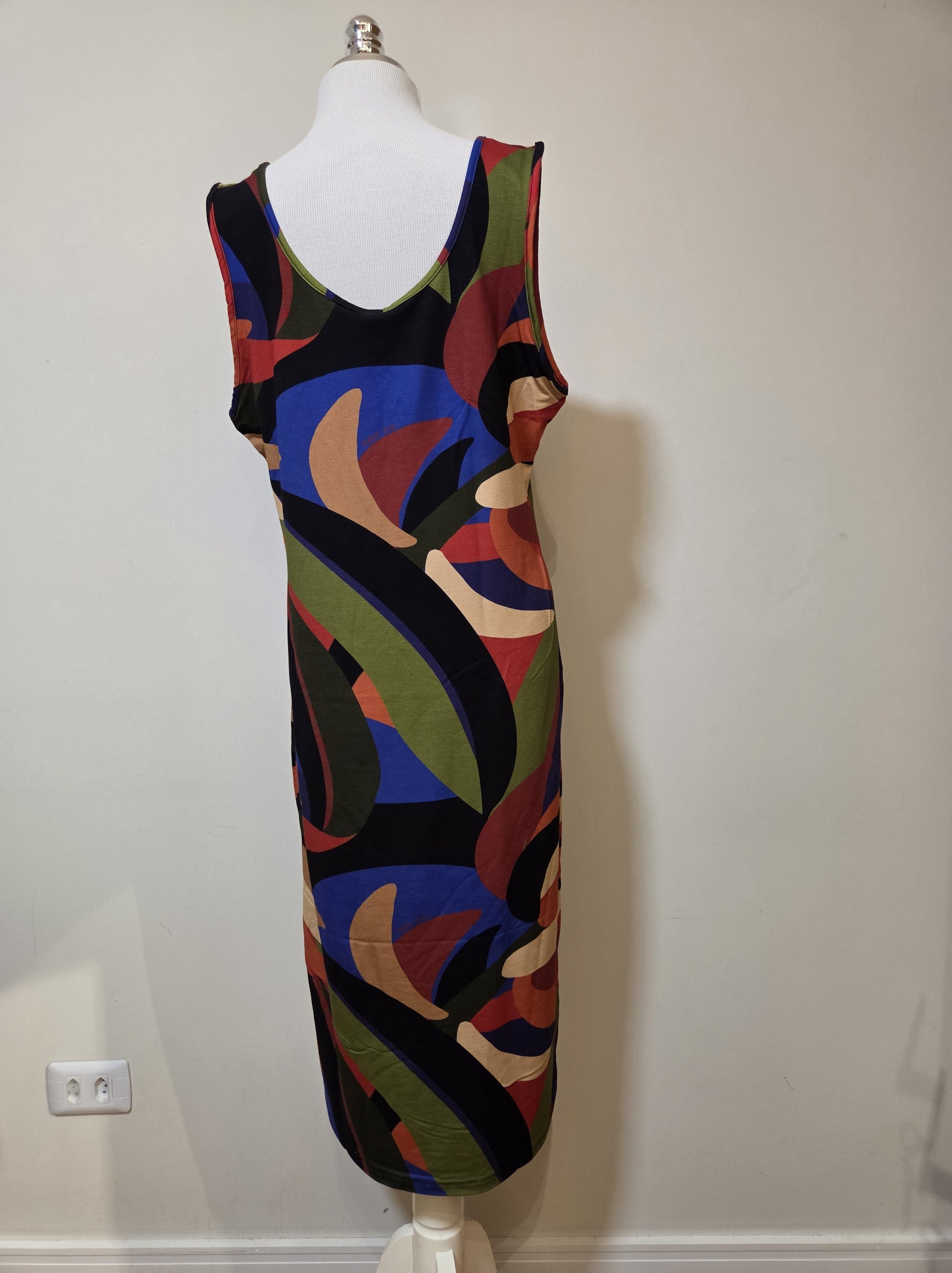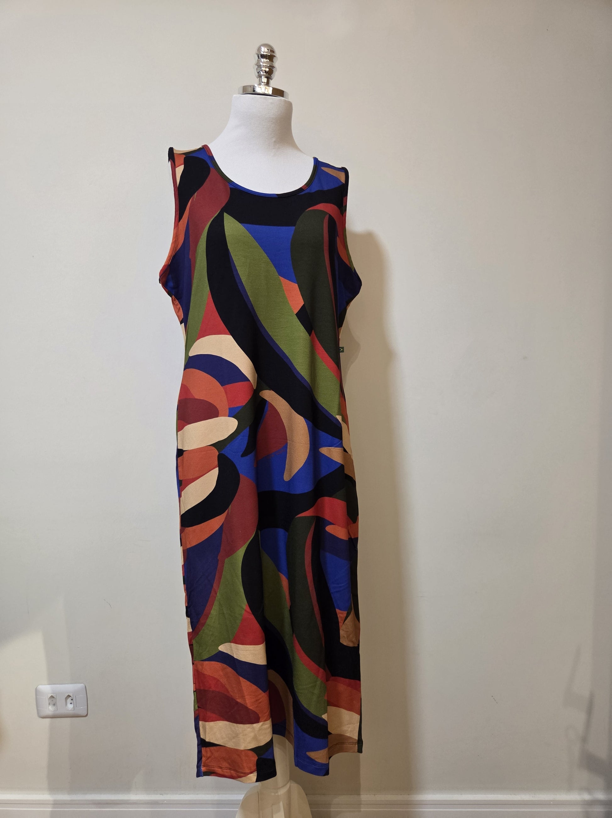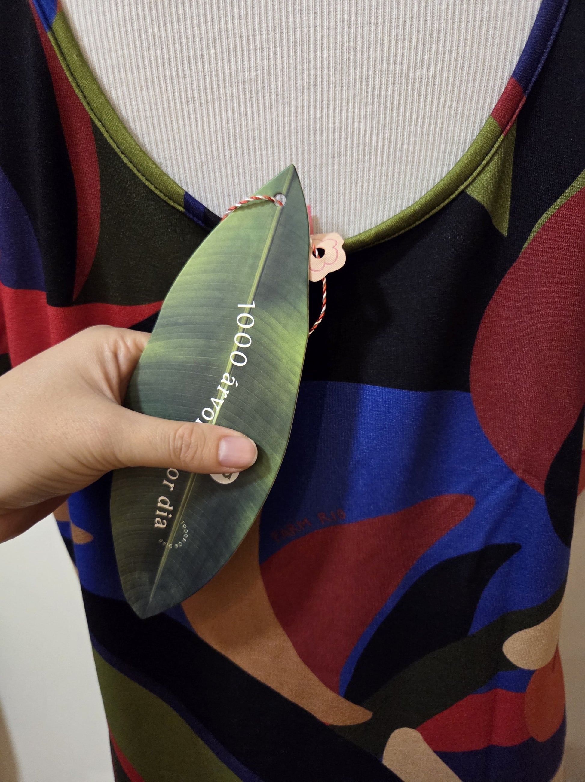 A peça se destaca por sua estampa exclusiva abstrata, que traduz o DNA vibrante da marca Farm. O design único com formas e cores não convencionais cria um look moderno e autêntico, ideal para quem busca roupas femininas estampadas com personalidade. O modelo longo é versátil e pode ser usado em diversas ocasiões, de um passeio no fim de semana a um evento especial, dependendo da combinação de acessórios.